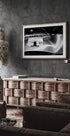 Deze opvallende zwart-witte poster toont de voorkant van een vintage racewagen met het kenmerkende "1c"-embleem. De elegante rondingen, gepolijste reflecties en tijdloze details vangen de gouden eeuw van de autosport op en maken het tot een verfijnd kunstwerk voor liefhebbers van klassieke auto's.