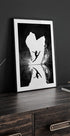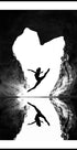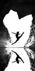 Dit opvallende zwart-wit kunstwerk toont een ballerina die sierlijk in een hartvormige grot springt, terwijl haar spiegelbeeld wordt weerspiegeld in stilstaand water. Het dramatische silhouet verenigt dans, natuur en romantiek en creëert een krachtige visuele expressie van passie, elegantie en tijdloze artistieke schoonheid.