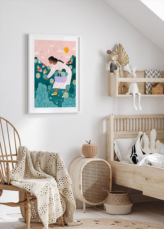 A Woman Tree Picking van Bea Müller - Premium kwaliteitspapier met een glad, mat oppervlak en een elegante uitstraling. De matte afwerking vermindert schittering en geeft een verfijnde, tijdloze uitstraling. Sterk en duurzaam voor langdurig gebruik, ideaal voor zowel professionele omgevingen als decoratieve displays.