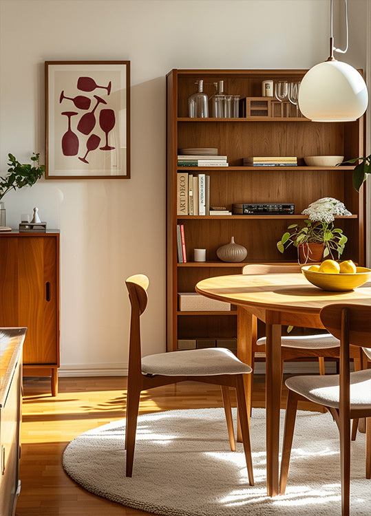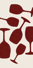 En moderne, Matisse-inspireret komposition af stiliserede vinglas, tegnet af Tara Royle. Grafiske former og flydende linjer mødes i varme rød- og orange toner, der fanger stemningen af barliv og samtale. Et minimalistisk blikfang til køkken, spiseplads eller stue med retro-charme. Perfekt som bar- eller køkkenkunst.