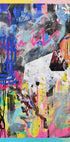 Deze abstracte poster is een opvallende explosie van kleur en textuur en combineert gewaagde penseelstreken, druipende verf en gelaagde, op graffiti geïnspireerde details. Met neonroze, elektrisch blauw en levendig geel tegen donkere contrasten creëert het een rauw en energiek statement, perfect voor moderne interieurs en liefhebbers van hedendaagse kunst.