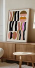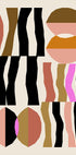 Dit abstracte geometrische kunstwerk heeft gedurfde vormen en aardse tinten in contrast met roze en zwart op een puur witte achtergrond. Geïnspireerd door de Bauhaus-esthetiek, combineert de compositie balans, ritme en modern minimalisme, waardoor een opvallend stuk ontstaat dat elk modern interieur naar een hoger niveau tilt.