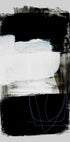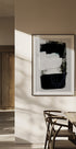Een opvallende monochrome abstracte poster met vegende zwart-witte penseelstreken, gelaagd met subtiele lijndetails. De sterke contrasten en gestructureerde oppervlakken creëren een minimalistische maar krachtige compositie, perfect voor moderne interieurs, Scandinavisch design of hedendaagse galeriewanden.