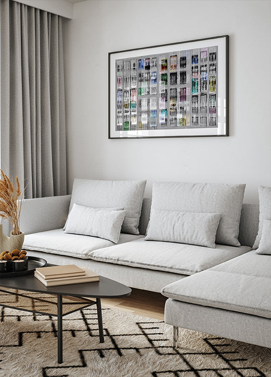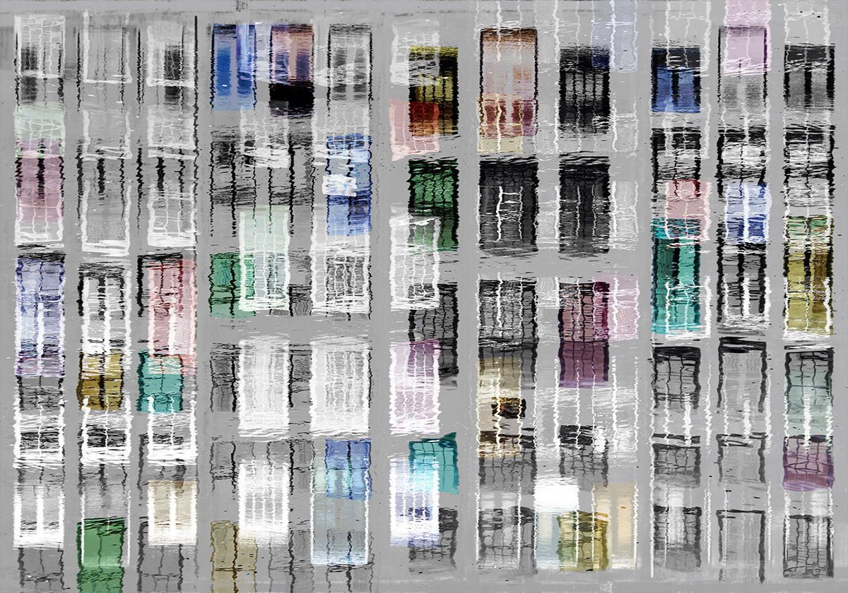 Amsterdam 36 van Igor Shrayer transformeert de grachten en gevels van de stad in een grafische, geometrische compositie. Reflecties in het water creëren ritmische patronen van ramen en lijnen die orde en beweging in evenwicht brengen. Een modern, abstract eerbetoon aan Amsterdam dat rust en energie aan de kamer toevoegt. Perfect voor moderne interieurs.