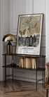 Drøm dig til Amsterdam med en grafisk plakat, hvor smalle gavlhuse spejler sig i kanalerne, cykler og broer danner rytme, og subtile kortdetaljer og retro typografi vækker rejselysten. En stemningsfuld collage af byens ikoniske arkitektur – illustreret af Simon Goggin. Farver i varm vintage-tone og grafiske lag giver plakaten et tidløst udtryk.