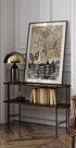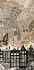 De City Breaks-poster van Simon Goggins legt de ziel van Amsterdam vast in een retro-geïnspireerde collage: kronkelende grachten, slanke Nederlandse huizen met puntgevels en iconische monumenten, bovenop een suggestieve stadsplattegrond. Legendevlinders voegen poëzie toe aan het stadsbeeld – een eerbetoon aan reislust, nostalgie en stedelijke charme. Gemaakt door Simon Goggin.