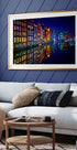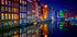 Een schitterend nachtzicht op de iconische grachtenpanden van Amsterdam, waar kleurrijke gevels gloeien in het licht en perfect worden weerspiegeld in het stille water. Dit levendige stadsbeeld viert de Nederlandse architectuur, stedelijke charme en de magische reflecties die Amsterdam in het donker onvergetelijk maken.