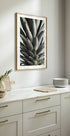 Een intense close-up van een ananas legt de sculpturale vormen van de bladkroon en het grafische patroon van de schelp vast in diepgroene en gouden tinten. De strakke uitsnede en zachte studioverlichting creëren een rustige, moderne uitstraling met frisse tropische energie en sensuele textuur die de ruimte naar een hoger niveau tilt. Perfect als rustig middelpunt in de keuken of woonkamer.
