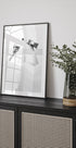 Een stijlvolle zwart-witfoto die een speels moment van ontspanning vastlegt: de ene hand houdt een wijnglas vast, terwijl de andere een Aperol-fles van het bed tilt. Minimalistisch en geestig, dit contrastrijke kunstwerk verenigt levensstijl, humor en elegantie in een moderne monochrome esthetiek.