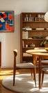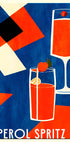 Een opvallende en kleurrijke grafische poster van de iconische Aperol Spritz-cocktail, met geometrische vormen in levendig oranje, blauw, zwart en wit. Met zijn modernistische ontwerp en speelse energie weerspiegelt het kunstwerk de essentie van de Italiaanse aperitivo-cultuur, perfect voor keukens, bars en sociale ruimtes.
