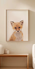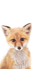 Een charmant, opvallend portret van een vossenwelp, vastgelegd tegen een eenvoudige witte achtergrond. De zachte vacht, de grote ogen en de fijne details benadrukken de onschuld en schoonheid van dit jonge bosdier. Perfect voor de kinderkamer, dierenliefhebbers of moderne minimalistische interieurs.