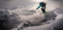 Een adembenemende actiefoto van een skiër die een gewaagde sprong maakt in het achterland, omringd door besneeuwde toppen en dramatische wolken. De dynamische compositie vangt de sensatie van wintersport, vrijheid en adrenaline in het hart van de alpiene wildernis. Perfect voor avonturiers, skiliefhebbers en fans van extreme sporten.