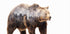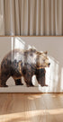 Een opvallend kunstwerk met dubbele belichting van een bruine beer, naadloos gecombineerd met een silhouet van een dicht bos. De heldere besneeuwde achtergrond benadrukt de wilde en majestueuze aanwezigheid van de beer, die symbool staat voor kracht, natuur en wildernis.