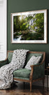 Een bergbeek kronkelt door dicht, groen bos, waar het water over met mos bedekte rotsen stroomt en het verstrooide licht van de zon opvangt. Woraphon Banchobdi vangt stilte en beweging op hetzelfde moment: een verfrissende pauze voor het oog die de koele natuur en tijdloze harmonie in uw ruimte brengt. Geïnspireerd door de weelderige nationale parken van Thailand.
