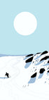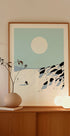 Snowy Mountain Descent van Nicholas legt de haast vast van een eenzame skiër die door de poedersneeuw over kalme, grafische berghellingen snijdt. Minimalistische blauw- en witte tinten, een lage winterzon en strakke lijnen creëren een moderne, rustige sfeer met een retro-ski sfeer en Scandinavische eenvoud. Perfect om een gevoel van avontuur en visuele rust in huis op te wekken.