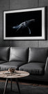 Een krachtige, rustige onderwaterfoto van een majestueuze bultrug die gracieus door de donkere diepten van de oceaan zwemt. Dit dramatische kunstwerk legt zowel de grootte als de schoonheid vast van een van de ware reuzen van de natuur en is perfect voor het creëren van een gedurfde en inspirerende sfeer in elke ruimte.