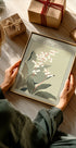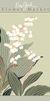 Een gestileerd boeket lelietje-van-dalen ontvouwt zich in frisse groentinten, de witte belletjes zweven licht en geven een luchtige, grafische expressie. Met subtiele verwijzingen naar de Bloemenmarkt in New York combineert het motief vintage charme en Scandinavische rust. Een poëtische lenteherinnering - gesigneerd Annick. Perfect voor de keuken, woonkamer of hal.