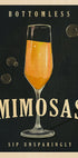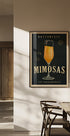 Een vintage geïnspireerde art-decoposter met een glas bodemloze mimosa's en speelse typografie. Deze print is perfect voor keukens, bars of brunchruimtes en viert champagne, sinaasappelsap en het plezier van cocktails. Een levendige muurkunst die charme toevoegt aan feesten en bijeenkomsten.