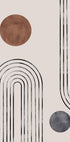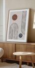 Een elegante abstracte poster met sterke geometrische vormen, cirkels en gebogen zwarte lijnen op een beige achtergrond. Geïnspireerd door het moderne design uit het midden van de eeuw, combineert dit minimalistische kunstwerk balans, ritme en elegantie, waardoor het een veelzijdig stuk is voor moderne interieurs.