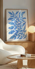 Een delicate botanische print met handgeschilderde blauwe bladeren op een witte achtergrond. De aquarelstijl combineert minimalisme met elegantie, waardoor het een veelzijdige keuze is voor moderne interieurs. Perfect om een frisse en natuurlijke toets aan elke kamer toe te voegen.