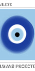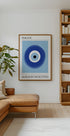 Een gedurfde en moderne illustratie van het traditionele boze oog-symbool, dat staat voor bescherming en het afweren van negatieve energie. Het opvallende ronde ontwerp in blauw en wit creëert een sterke minimalistische expressie met culturele betekenis.
