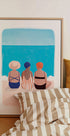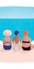 Een heldere en vrolijke illustratie van drie vrouwen die samen aan zee zitten en genieten van de zon en het uitzicht. Een perfect kunstwerk om het vakantie-, ontspannings- en zomergevoel van de kust in huis te halen.