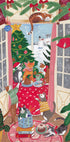 Caroline Bonne Müller’s joyful illustration captures curious cats perched on a cosy windowsill, gazing at a snowy garden where a friendly snowman stands. Inside, books, leafy plants and a radiant Christmas tree glow in bold, Fauvist colours, creating a whimsical winter scene brimming with warmth and wonder.