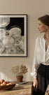 Een verfijnde zwart-witfoto van een champagnetoren, met fijne reflecties en bubbels in een vintage coupéglas. Dit tijdloze stilleven vangt de elegantie van het feest en is een prachtige aanvulling op moderne keukens, eetkamers en stijlvolle interieurs.