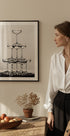 Een opvallend zwart-wit stilleven van een champagnetoren. Elegant, minimalistisch en reflecterend, dit kunstwerk symboliseert feest en stijl, perfect voor keukens, bars of moderne interieurs.