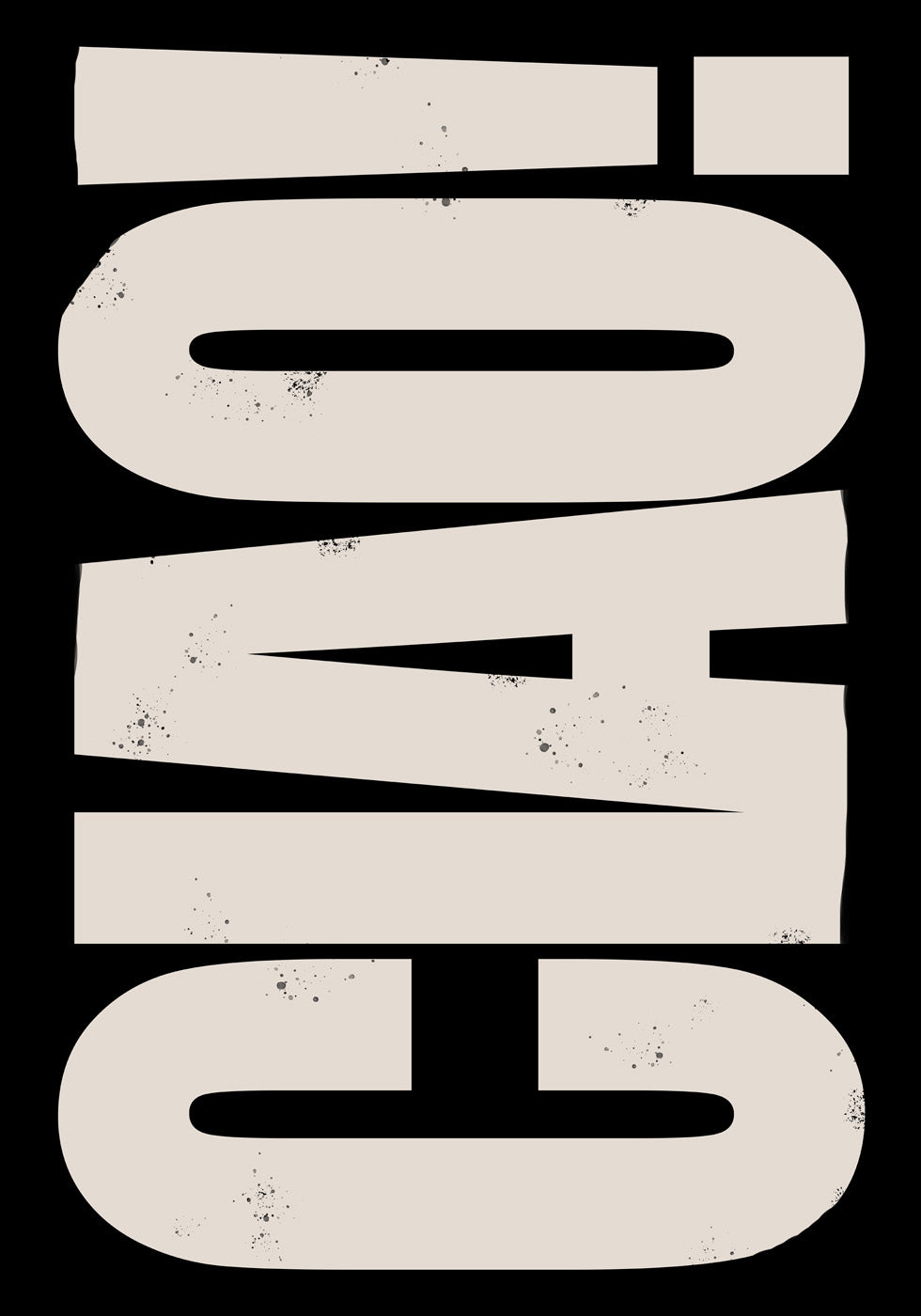 Een opvallende poster met verticale typografie, waarop het woord CIAO in grote, opvallende letters tegen een zwarte achtergrond wordt weergegeven. Een moderne en stijlvolle keuze voor het grafische interieur.