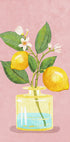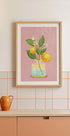 Lemon Flower Vase Poster is een frisse en opbeurende kunstprint die de charme van het mediterrane leven weergeeft. Met twee lichtgele citroenen met weelderige groene bladeren en delicate witte bloemen in een glazen vaas gevuld met water, staat de illustratie prachtig tegen een zachtroze gestructureerde achtergrond. Deze vrolijke compositie brengt een vleugje zonneschijn en natuurlijke schoonheid in keukens, eetkamers of galerijmuren en is perfect voor het toevoegen van een frisse en levendige toets aan elk interieur.