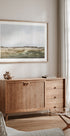 Een vredig abstract landschap van Dan Hobday met aardetinten en zachte penseelstreken. Met tinten groen, beige en grijs die samenvloeien tot een rustige horizon, geeft het werk een gevoel van rust en tijdloosheid. Perfect voor interieurs in boerderijstijl, moderne, minimalistische huizen of als onderdeel van een op de natuur geïnspireerde fotowand.