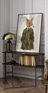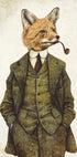 Een charmant, antropomorf portret van een vos in maatpak, met pijp en gedistingeerde mijn en aristocratisch wezen - een knipoog naar de klassieke elegantie van vintage portretten. Het werk van Mike Koubou combineert humor en nostalgie in een strak, groen getint universum dat zowel de woonkamer als de werkmuur naar een hoger niveau tilt - met persoonlijkheid.