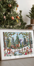 Gemaakt door Caroline Bonne Müller: Een poëtisch wintertafereel waar bosdieren samenkomen in kalme sneeuwval. Een sierlijke familie herten en een nieuwsgierige vos rusten uit bij dennenbomen en hulst, terwijl de uil vanaf een tak toekijkt. Hazen, eekhoorns en kleine vogels brengen leven in het ijzige landschap en zorgen voor een warme kerstsfeer en avontuur.
