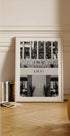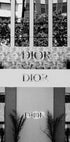 Een verfijnde zwart-witfoto van de Dior-winkel in Madrid, met elegante spiegelreflecties en het iconische Dior-logo herhaald op de gevel. Deze print verenigt moderne verfijning met tijdloze luxe en wordt een onmisbaar statement voor interieurs geïnspireerd door mode, architectuur en design.