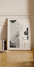 Een elegante zwart-witfoto van de Dior-winkel in Miami, waarop de moderne architectonische lijnen zijn afgebeeld, bekroond met een ster. Deze print, die de elegantie van de luxueuze aanwezigheid van Dior in een eigentijdse omgeving vastlegt, wordt een stijlvol statement voor interieurs die zijn geïnspireerd op mode, architectuur en tijdloos design.