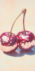 Een speels en fantasierijk kunstwerk van twee kersen omgetoverd tot glinsterende discoballen. Met levendige kleuren, glanzende reflecties en een schilderkunstige stijl combineert dit werk surrealisme en stilleven op een moderne en grillige manier die energie en plezier toevoegt aan elke kamer.