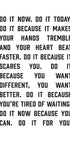 Een opvallende zwart-witte typografieposter met de motiverende boodschap "Doe het nu. Doe het vandaag. Doe het omdat het je handen doet trillen en je hart sneller doet kloppen..." Dit krachtige werk inspireert moed, vastberadenheid en actie, perfect voor werkruimtes, studio's of elke plek waar motivatie nodig is.