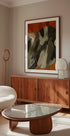 Et moderne, abstrakt motiv af Treechild, hvor varme jordtoner, grå og dybe orange nuancer flyder i organiske lag. Bløde penselstrøg skaber bevægelse som lava og stenformationer, og giver rummet rolig energi. Perfekt som stilfuld vægdekoration i både minimalistiske og nordiske interiører. Tilføjer dybde, rytme og naturlig varme.