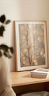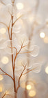 Een delicate en rustige close-up van transparante bladeren die zachtjes gloeien tegen een dromerige bokehachtergrond. De fijne details en pastelkleuren creëren een etherische en rustgevende sfeer, waardoor dit op de natuur geïnspireerde minimalistische kunstwerk perfect is voor moderne en elegante interieurs.