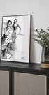 Flamencoens puls fanges i en livlig skitse af to dansere i prikkede kjoler, fanget midt i et dramatisk sving. De ekspressive, skitseagtige linjer og spanske referencer til Sevilla og Madrid giver motivet energi og charme. En hyldest til venskab, rytme og stil – af Awol Art Alex. Prikker, volantes og attitude gør værket til blikfang i ethvert rum.