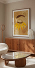 Een opvallend figuratief kunstwerk van een oog met lange gele bloemblaadjes als wimpers, een symbool van schoonheid, creativiteit en de verbinding tussen natuur en vrouwelijkheid. Dit gedurfde digitale kunstwerk combineert portretkunst met bloemig surrealisme.