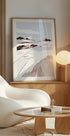 Deze poster van Nikita Jariwala vangt de stille poëzie van de winter: een bevroren watermassa, zachte sneeuwbanken en verre bergsilhouetten in koele blauwtinten en warme aardetinten. Het minimalistische landschap balanceert rust en diepte, zodat het oog verschuift van ijzige details naar het rustige licht van de horizon. Perfect voor kamers die op zoek zijn naar Scandinavische rust.