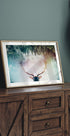 Een dromerige surrealistische kunstprint die het majestueuze silhouet van een hert combineert met een mistig boslandschap. Dit dubbele belichtingswerk geeft een spirituele en mystieke sfeer. Perfect om een gevoel van fantasie en wildernis aan je huis toe te voegen.