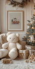 Een warme aquarelscène van Xuan Thai: een gezellige kamer in zachte beige tinten, waar een kleine kerstboom glinstert naast een bank. Twee schattige teddyberen en discrete winterdetails zorgen voor rust en een feestelijke sfeer. Perfect voor de kinderkamer of de woonkamer, waar hij rustige kerstmagie verspreidt. Een tijdloze wintergroet in aquarellen.