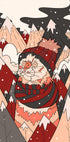 Een gezellige winterkat betreedt het podium in een besneeuwd landschap, waar zachte vlokken over stille bergen op de achtergrond vallen. De warme, cartoonachtige stijl verspreidt kerstsfeer en rust, perfect voor de woonkamer in het koude seizoen. Een charmante illustratie van Stephen Wade die zowel spel als eigenzinnigheid weergeeft. Een winterse ansichtkaart voor aan de muur.