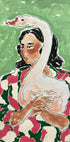 Girl With Duck af Rushati Chowdhury er et poetisk portræt af en ung kvinde i roligt samspil med en and. Subtile farvetoner og bløde kontraster skaber en drømmende, moderne stemning, hvor blikket og fuglens silhuet danner en elegant balance. En inviterende vægfortælling med stille styrke. Perfekt til rum, der kalder på ro og nysgerrighed.