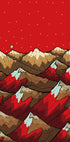 Gouden en rode bergtoppen rijzen op in lagen van geometrische vormen, als een gewatteerd winterlandschap badend in rustig decemberlicht. Met sneeuw gestippelde hellingen en diepe karmijnrode nuances ontmoeten fijne gouden accenten en creëren ritme en rust. Een modern, feestelijk landschap van Stephen Wade, ideaal voor Scandinavisch minimalisme. Perfect als warm kleuraccent in de woonkamer of inkomhal.