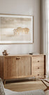 Een poëtisch herfstlandschap gehuld in mist, waar gouden en oranje bomen zacht gloeien tegen het wazige ochtendlicht. De dromerige sfeer vangt de stille schoonheid van de natuur in de overgang naar de herfst, waardoor dit een rustgevend en suggestief kunstwerk is voor elk interieur.