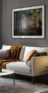 Een mistig bospad omringd door herfstbladeren dat de magische sfeer van de herfst vastlegt in zacht licht en mist. Dit suggestieve boslandschap nodigt uit tot rustige reflectie en past perfect bij gezellige, op de natuur geïnspireerde interieurs.
